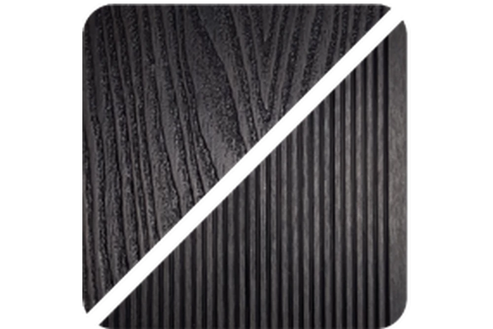 Prémium WPC teraszburkolat antracit színben, 2900x140x23mm. A Prémium WPC burkolat mind a két oldalával felfelé rakható, egyik oldala faerezetes mintájú, a másik oldala sűrűn bordázott. A Prémium WPC burkolat tökéletes választás szállodai és éttermi teraszok, járdák és medence partok burkolására.